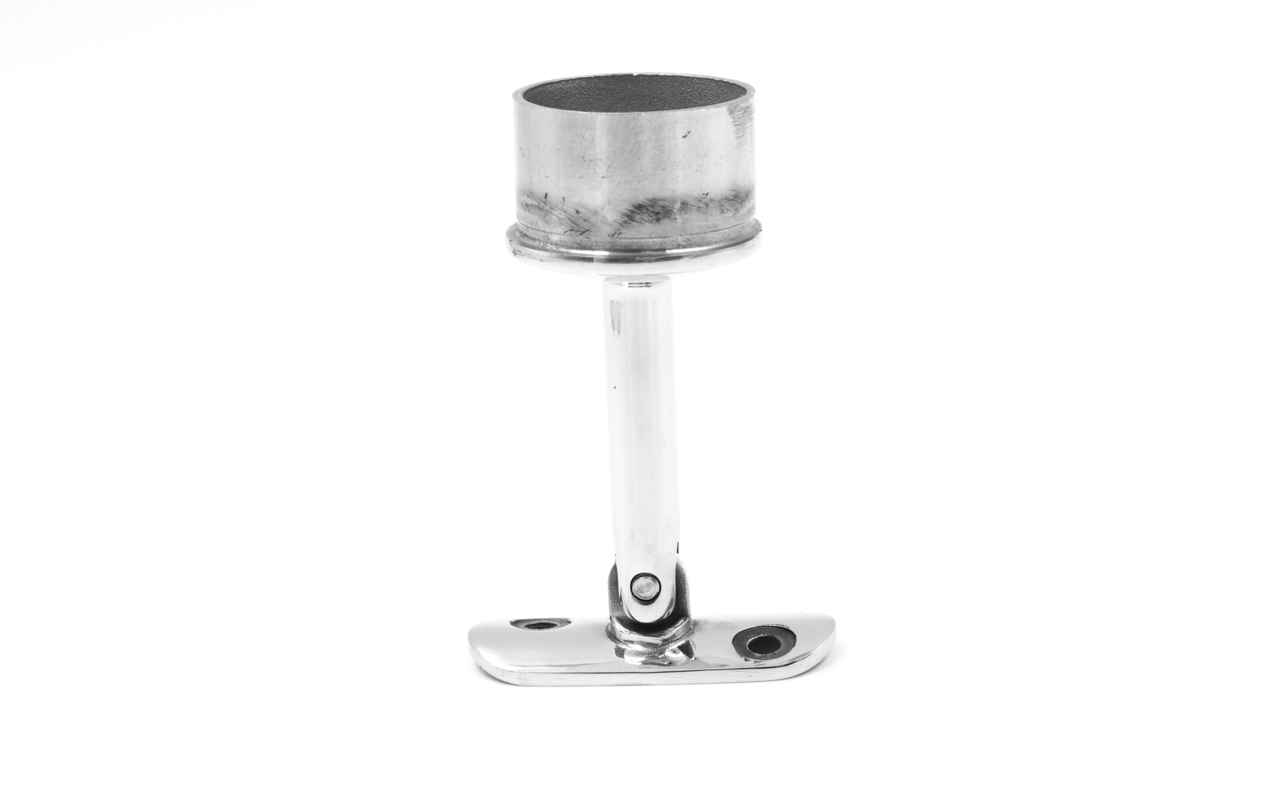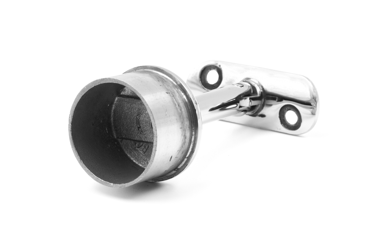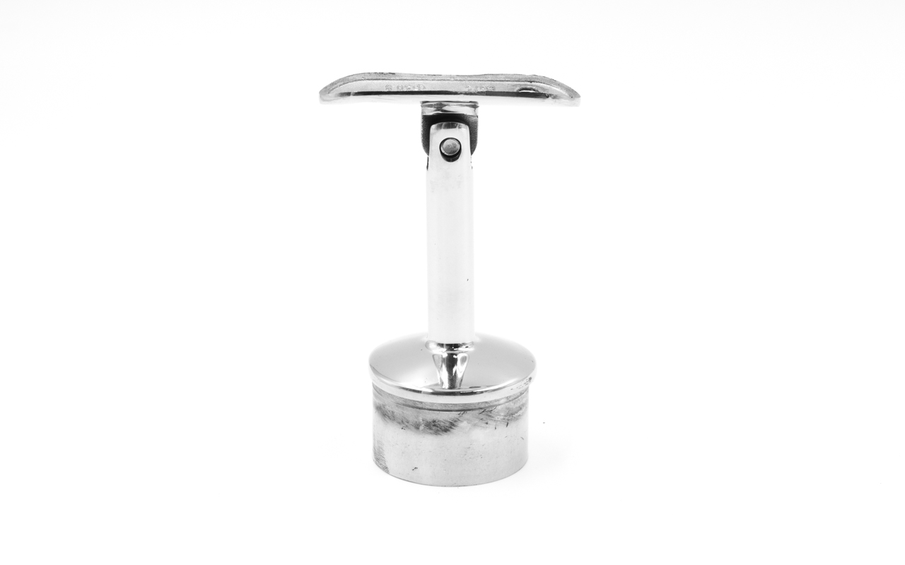 Наконечник палец на стойку Ø42.4х1.5 мм, с регулируемым ложементом под поручень Ø50.8 мм. Деталь литая, полированная, нержавеющая. марка стали - AISI 304