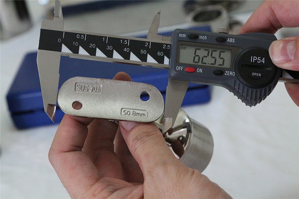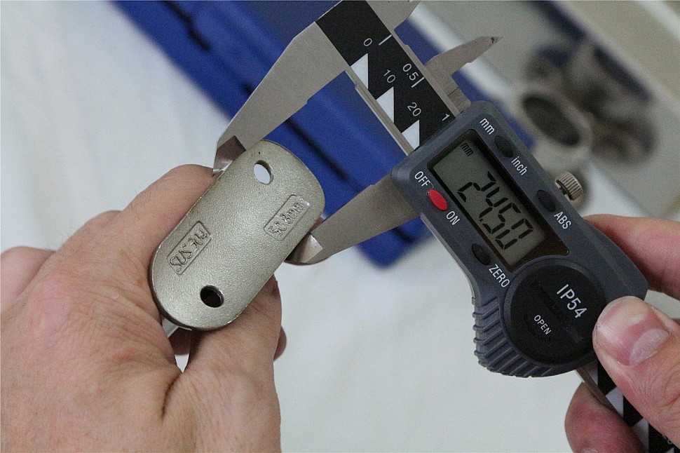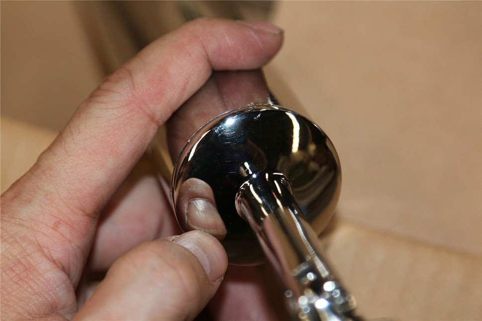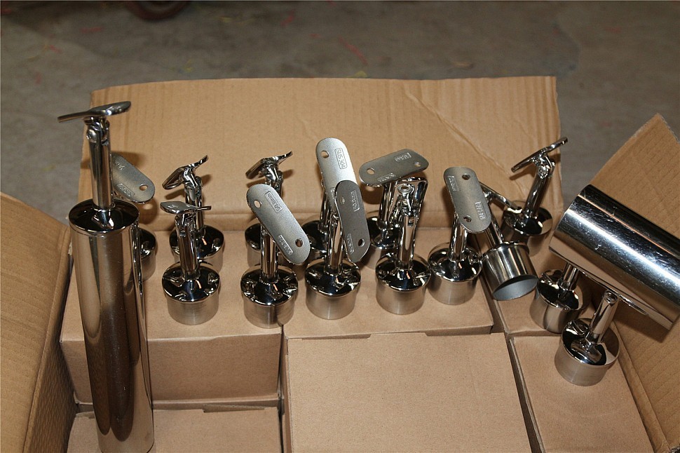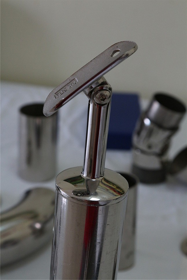 Наконечник палец на стойку Ø42.4х1.5 мм, с регулируемым ложементом под поручень Ø50.8 мм. Деталь литая, полированная, нержавеющая. марка стали - AISI 304