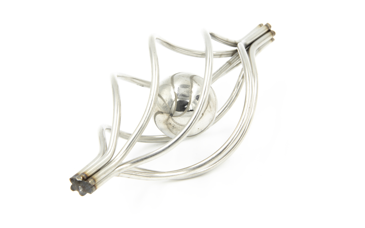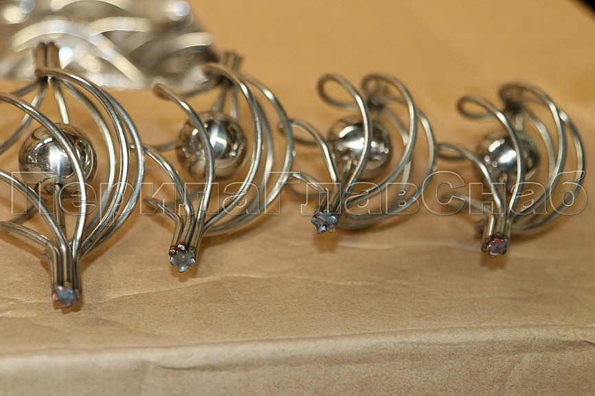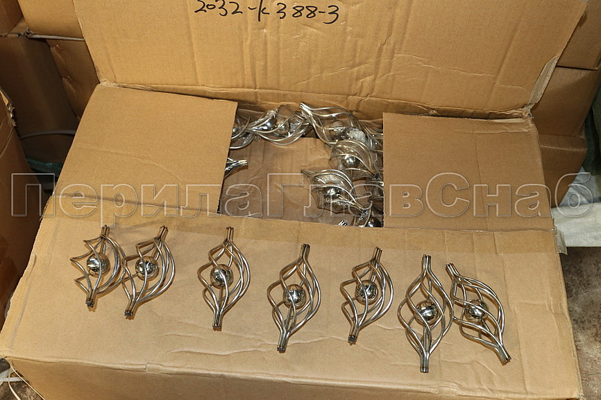 Декоративная вставка (корзинка) для стойки Ø25 мм, с серебряным шаром. Деталь полированная, литая. Марка стали - AISI 304