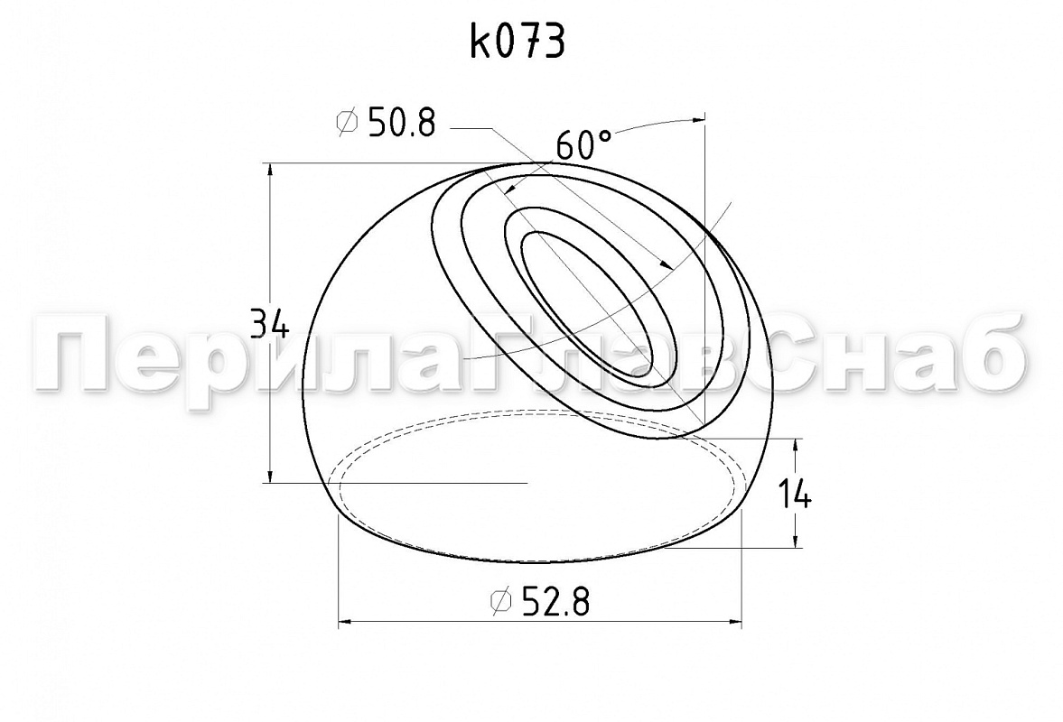 Наконечник штампованный (СПС) косой 30° на трубу Ø50.8 мм, для поручня Ø50.8 мм, полированный, нержавеющий, AISI 304, 600Grit, k073