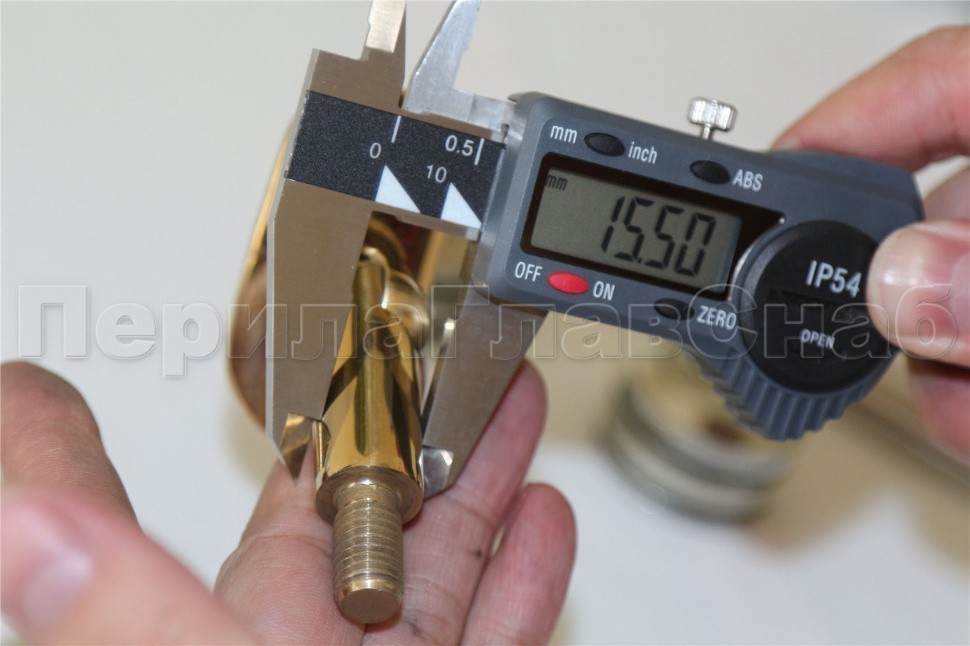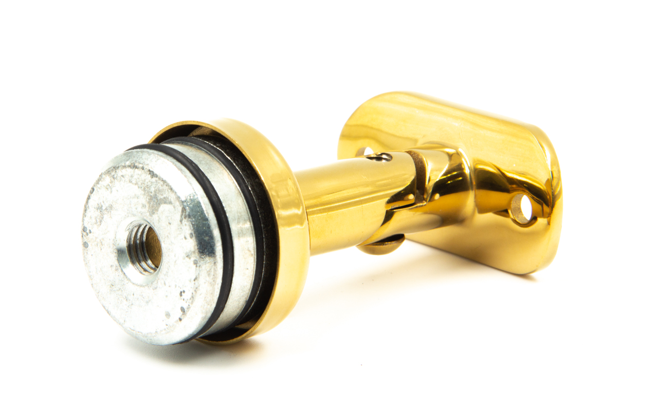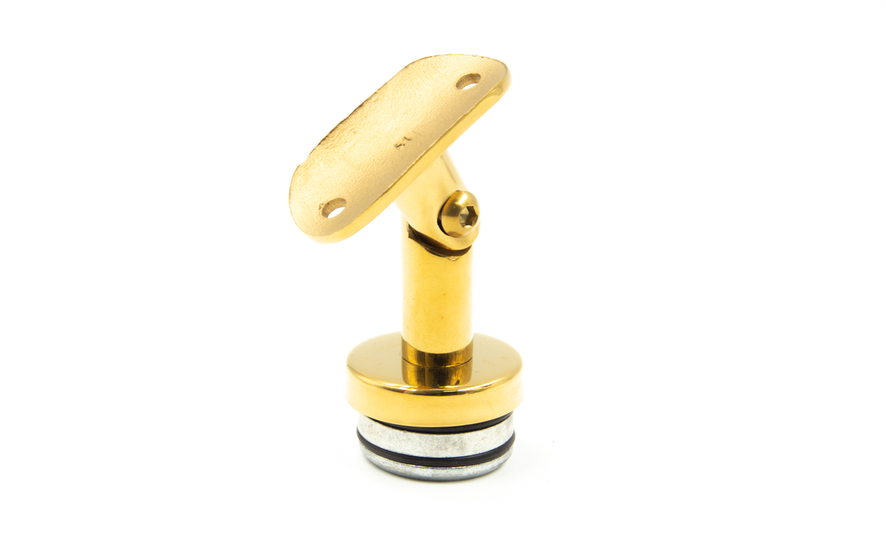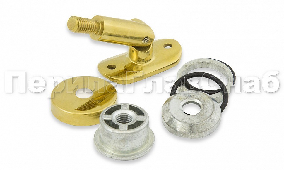 Наконечник на стойку, под золото, Ø38.1 мм, палец регулируемый, с механическим креплением и юбкой, закрывающей срез трубы, с регулируемым ложементом под поручень Ø50.8 мм