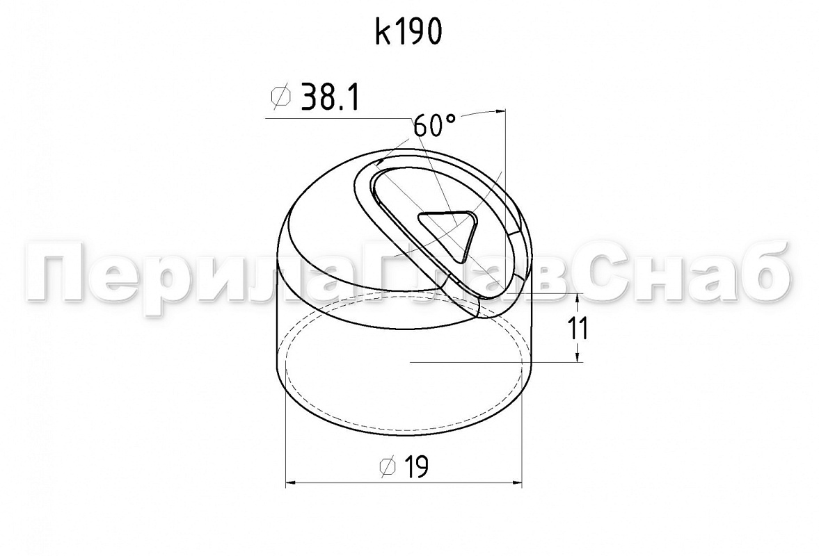 Наконечник штампованный (СПС) прямой 90° на трубу Ø19 мм, для поручня Ø38.1 мм, полированный, нержавеющий, 600 Grit, AISI 304, k191 купить в Омске