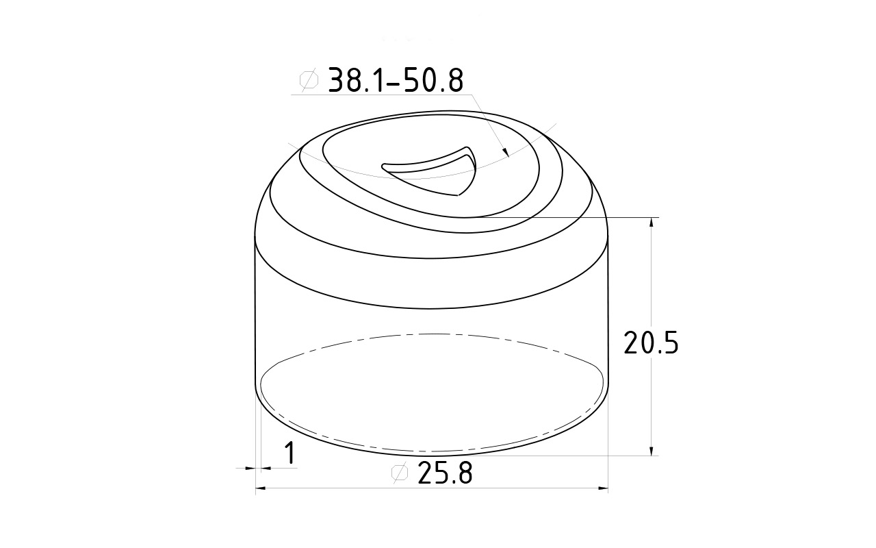 Наконечник штампованный с отверстием (СПС) прямой 90° на трубу диаметром 25 мм, для поручня диаметром 38.1-50.8 мм. Деталь полированная, нержавеющая. Марка стали - AISI 201