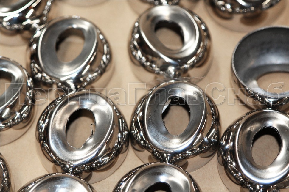 Наконечник штампованный (СПС) косой 30° на трубу Ø42.4 мм, для поручня Ø50.8 мм, полированный, нержавеющий, AISI 304, k322