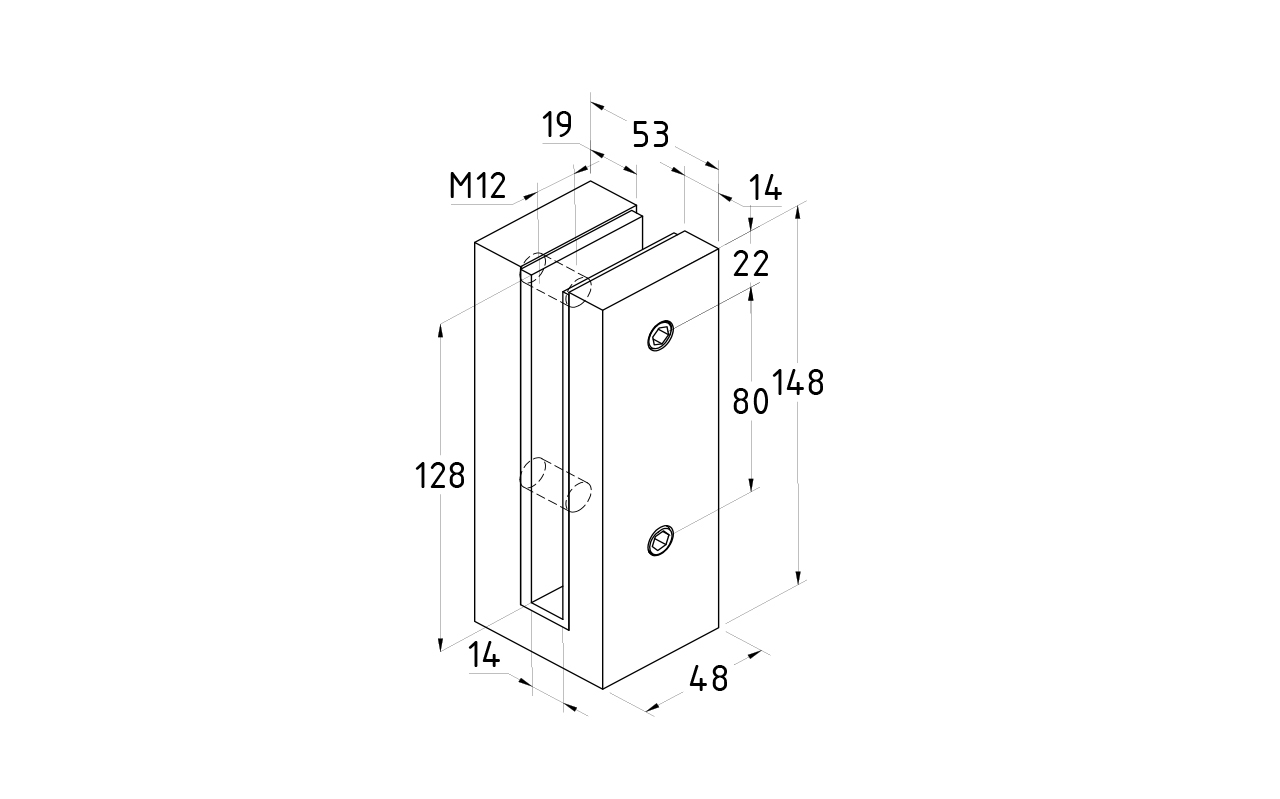 Торцевой стеклодержатель для стекла 12 мм, полированный, марка стали- AISI 304