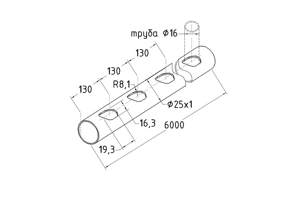 Труба AISI 304 25х1х6000, с перфорацией под Ø16, 30°, GRIT 600 837-3