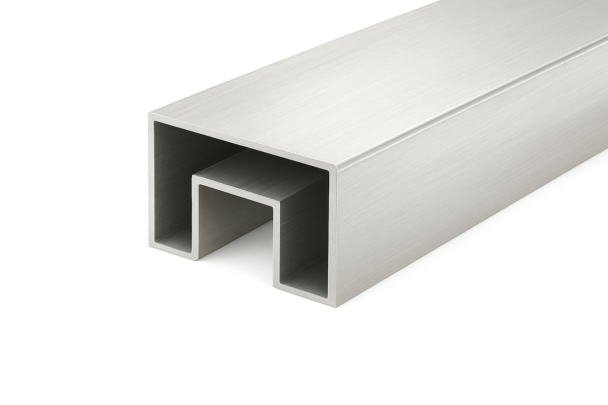 Труба, 40х60мм, с пазом 24х24мм под стекло, шлифованная, AISI 201