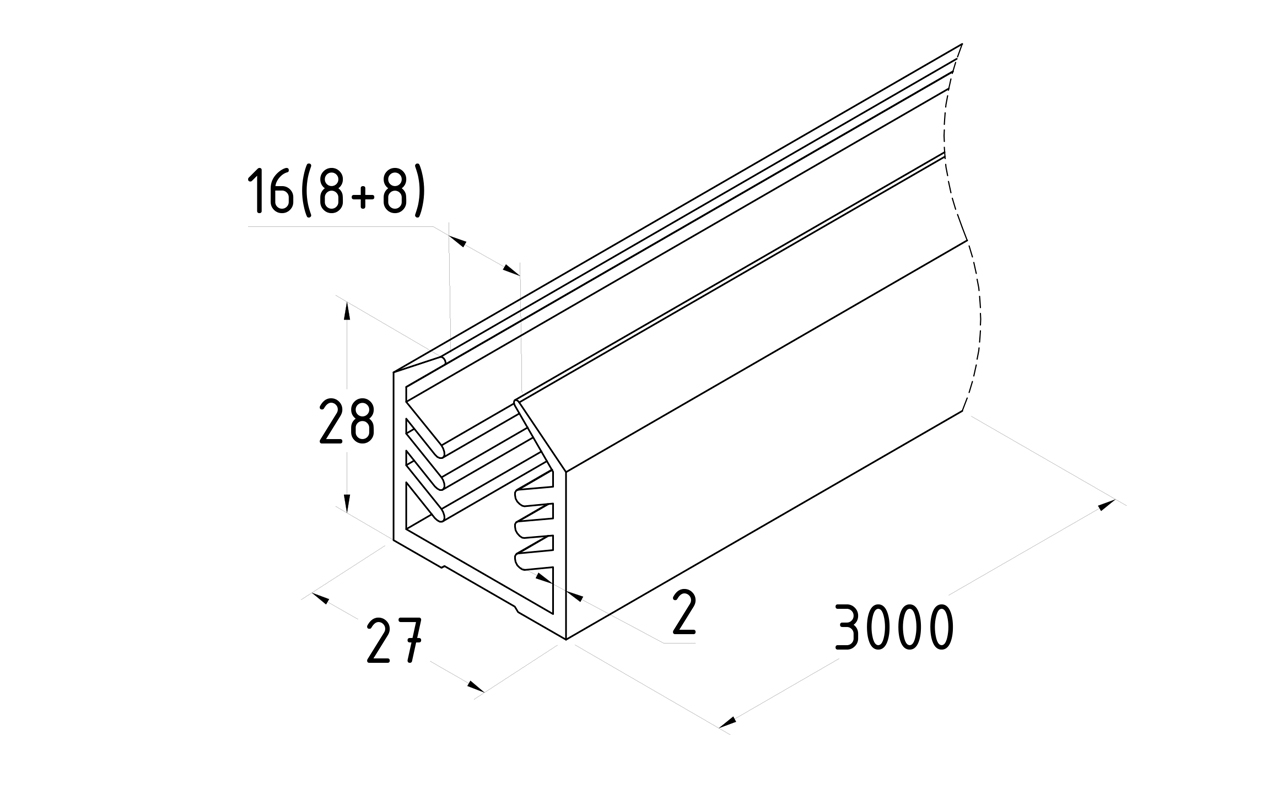 Уплотнитель в поручень с пазом 27х30 для стекла 8+8мм, EPDM (палки по 3м) СЕРЫЙ Фk307-G