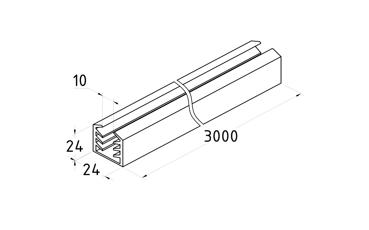 Труба Ø42.4 мм, с пазом 24х24 мм, анодированный алюминий Фk820 AL