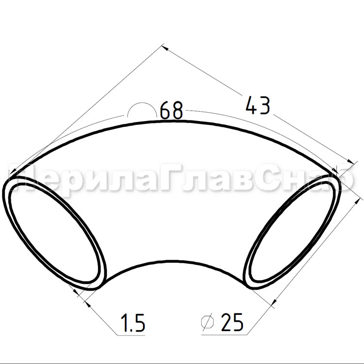 Отвод поручня под сварку Ø38.1х1.45 мм, 90°, полированный 400 Grit, (AISI 201) k095-6 купить в Омске