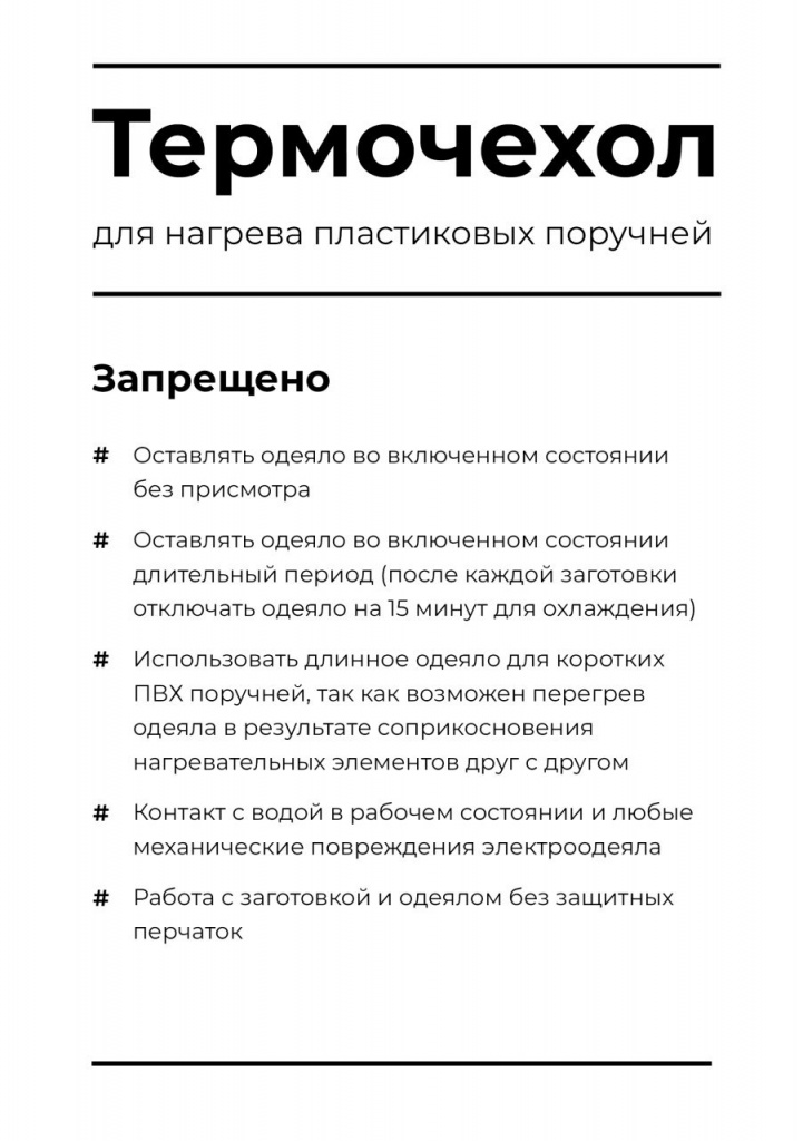 Поручень гнется с помощью термочехла k942-2 (рукав 4 метра), k942-3 (рукав 2 метра), либо k942 (рукав 1 метр). Не гните поручень путем нагрева строительным феном. Данная технология имеет много недостатков: