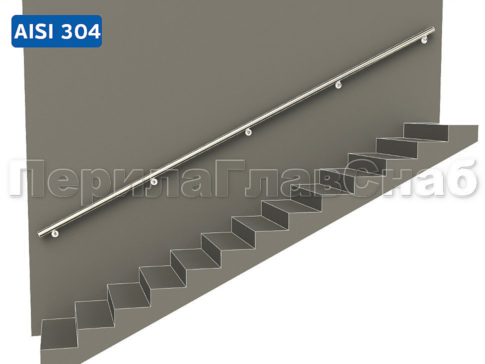 Готовый пристенный поручень с 4 держателями, длина 3300 мм (AISI 304) k730-33 купить в Омске