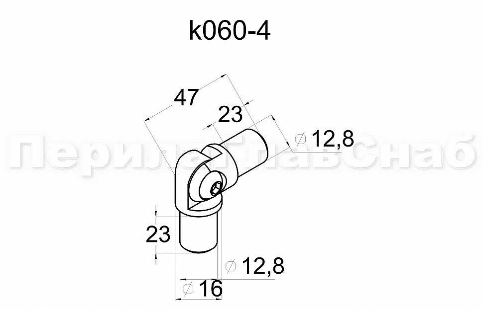 Поворот ригеля Ø16х1.5 мм, с двумя установочными штифтами, шарнирный, (AISI 304) k060-4