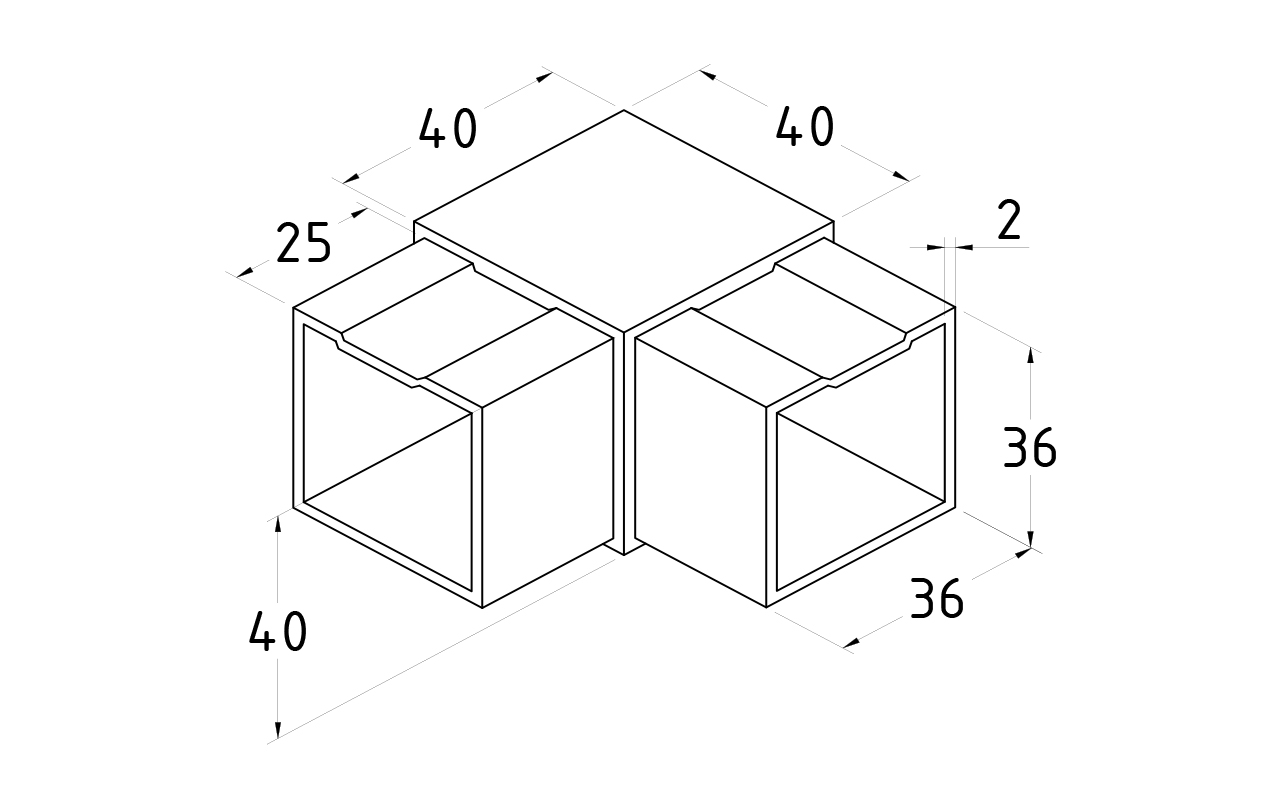 Поворот поручня 40х40 мм, нержавеющая сталь AISI 304, полированная k365