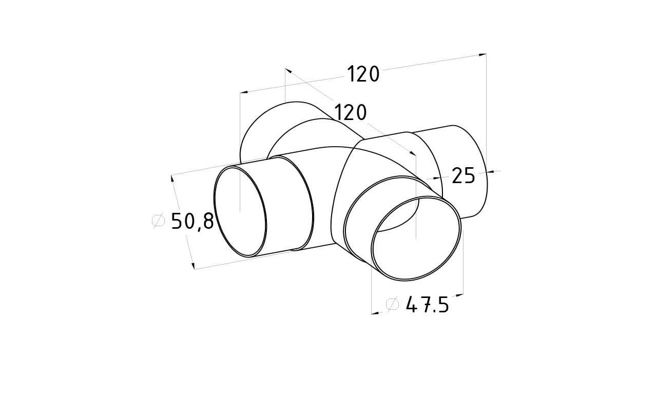 Соединение поручня Ø50.8 мм, крестовина (AISI 304)