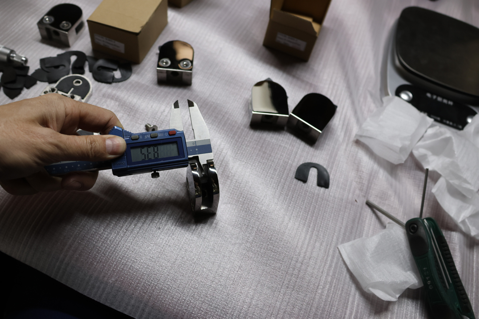 Стеклодержатель литой под стекло 8 мм (4+4 мм), под стойку Ø38.1 мм 40х22х49, полированный (AISI 304) k001-4