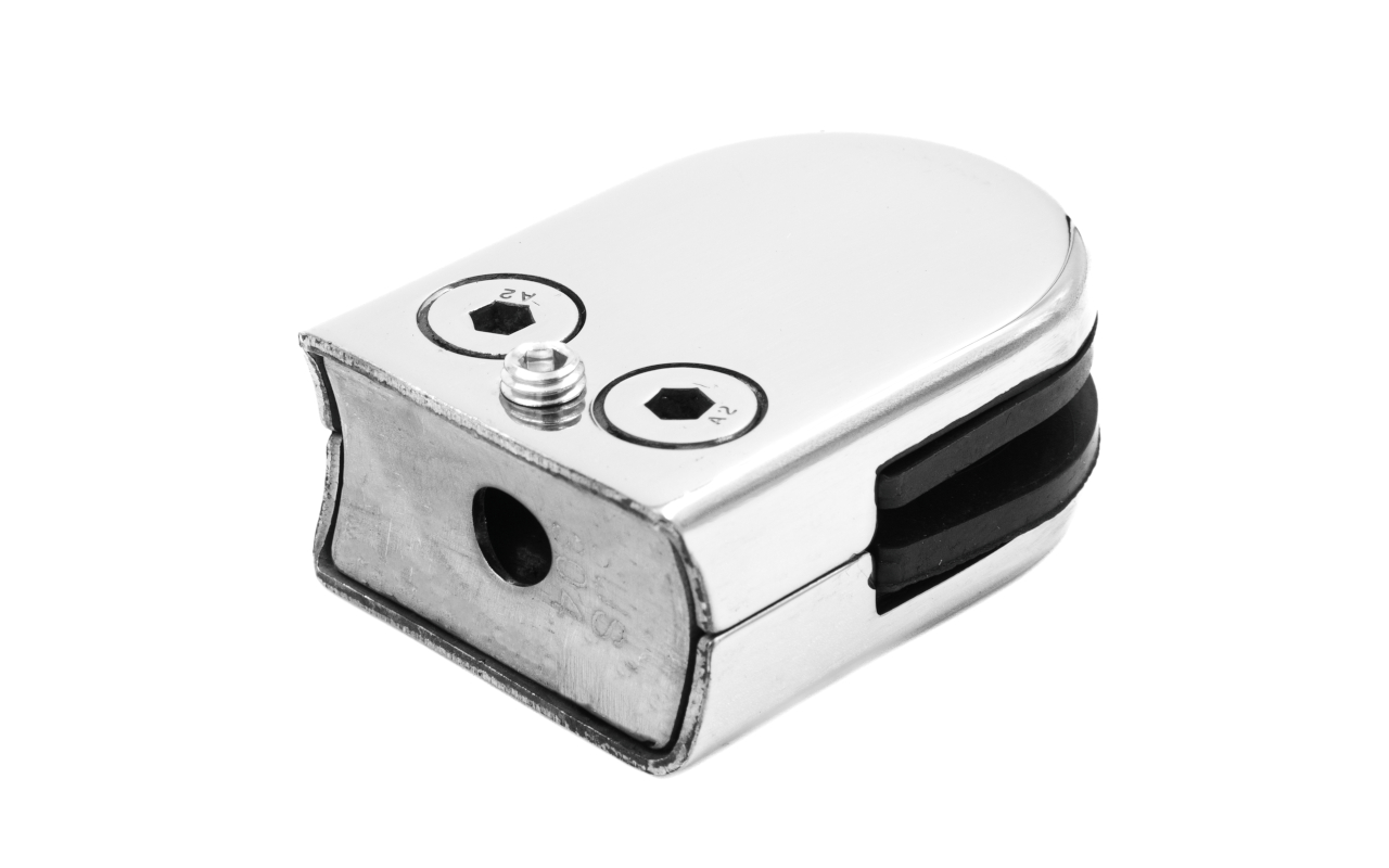 Это бюджетный зажимной стеклодержатель на рынке собственно производства компании ПерилаГлавСнаб. Отлично подходит для быстрого монтажа ограждений со стеклом толщиной 8 мм на круглую стойку Ø38.1 мм. По виду полностью повторяет свой аналог k038, но бюджетнее. Отличие в том, что он выдерживает нагрузку на 10 кг меньше, чем предшественник.