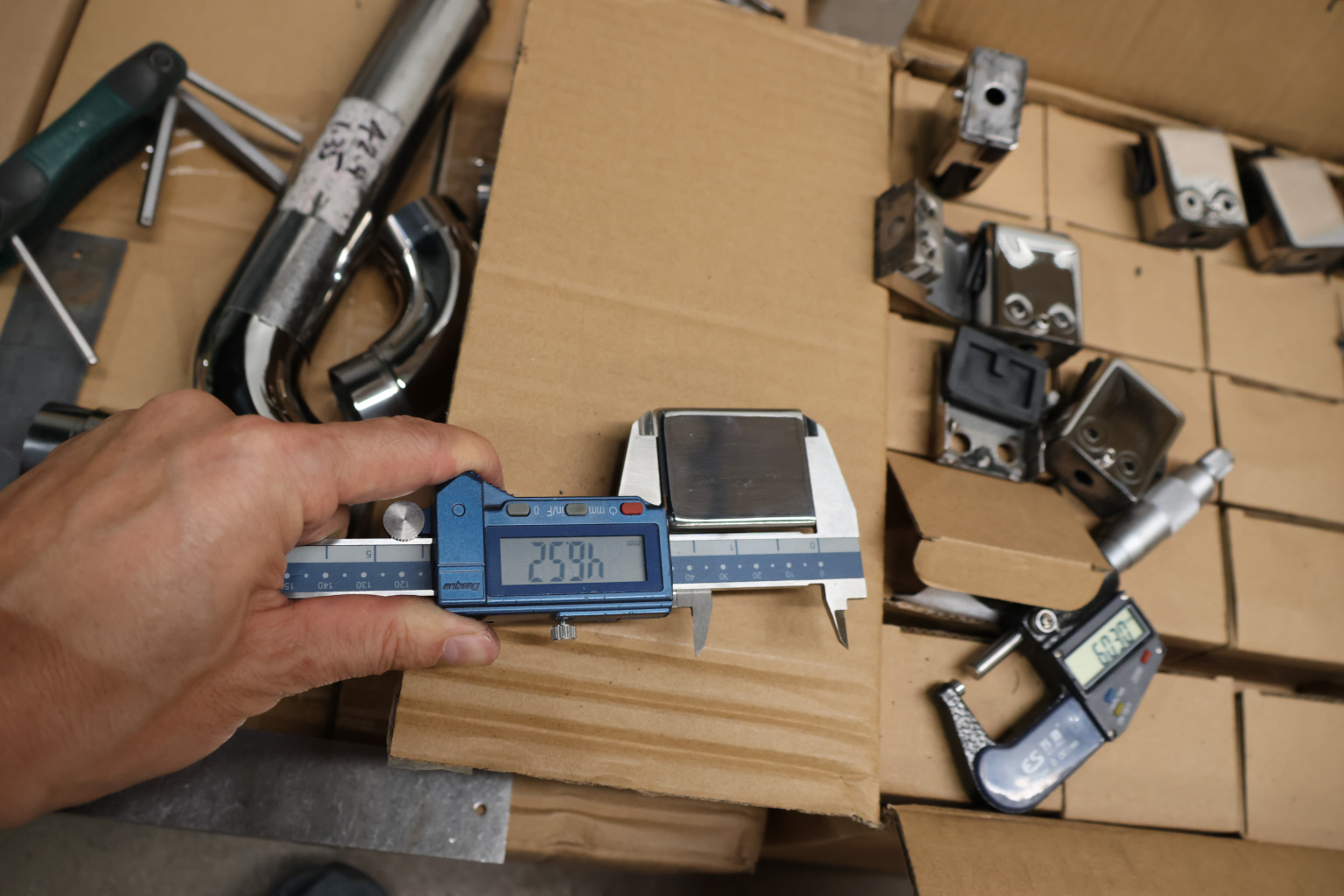 Наконечник на стойку из профильной трубы 40х40 мм, с регулируемым ложементом под плоскость, литой, полированный, нержавеющий AISI 304 k222-3 купить в Омске
