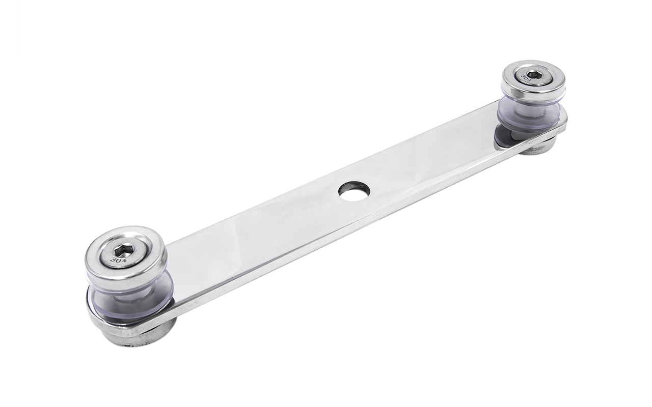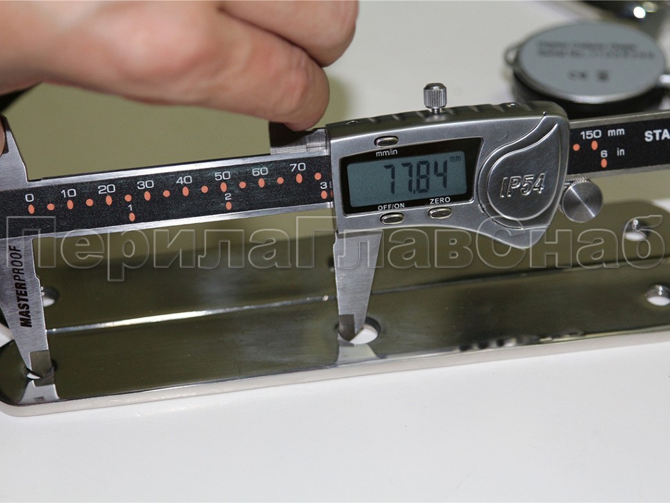 Стеклодержатель пластинчатый 3хМ8, по центрам 170х5 мм, полированный, шайбы 5 мм штамп., под стекло 6-12 мм, AISI 316 k023-8 купить в Омске