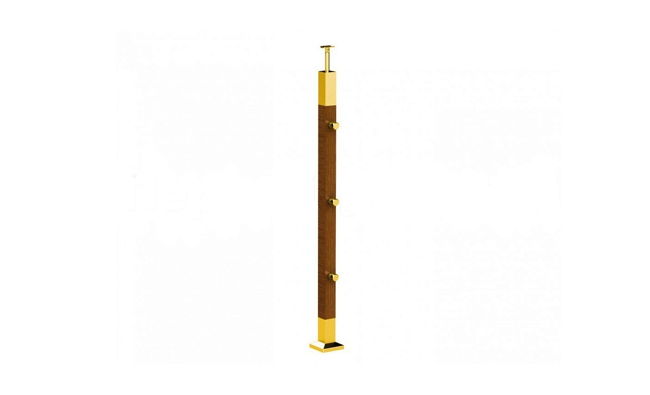 Готовая стойка 40х40х950 мм, деревянная, со вставками из нержавеющей стали 2х100 мм с 2 пластинчатыми стеклодержателями, под золото k740-2-G купить в Омске