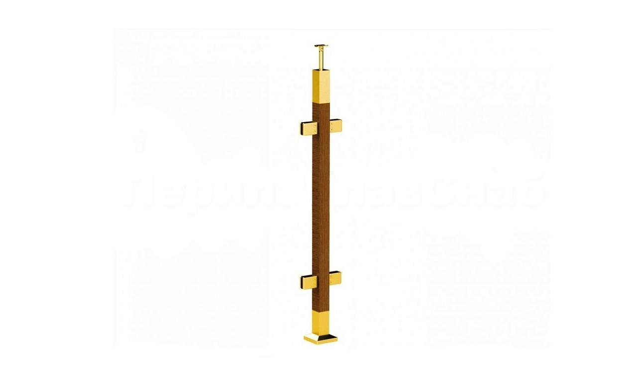 Готовая стойка 40х40х950 мм, деревянная, со вставками из нержавеющей стали 2х100 мм с 2 зажимными стеклодержателями, под золото k740-4-R-G купить в Омске