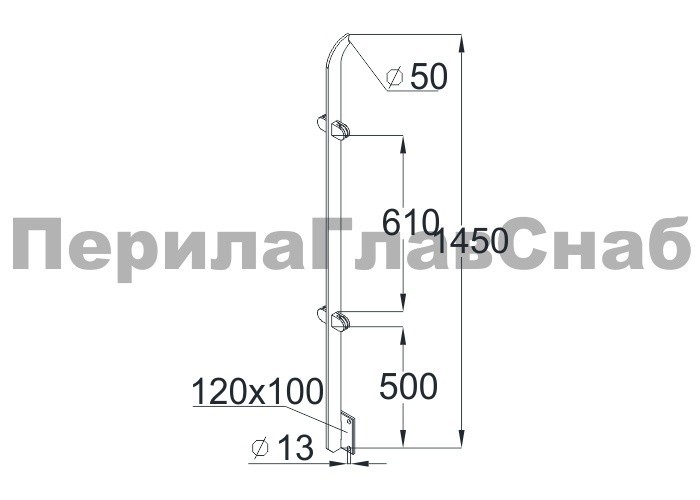 Стойка для пандуса: под 2 поручня Ø38,1 мм для инвалидов, полированная, высота 900 мм (AISI 304) k750