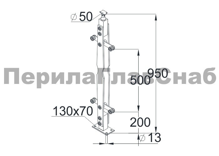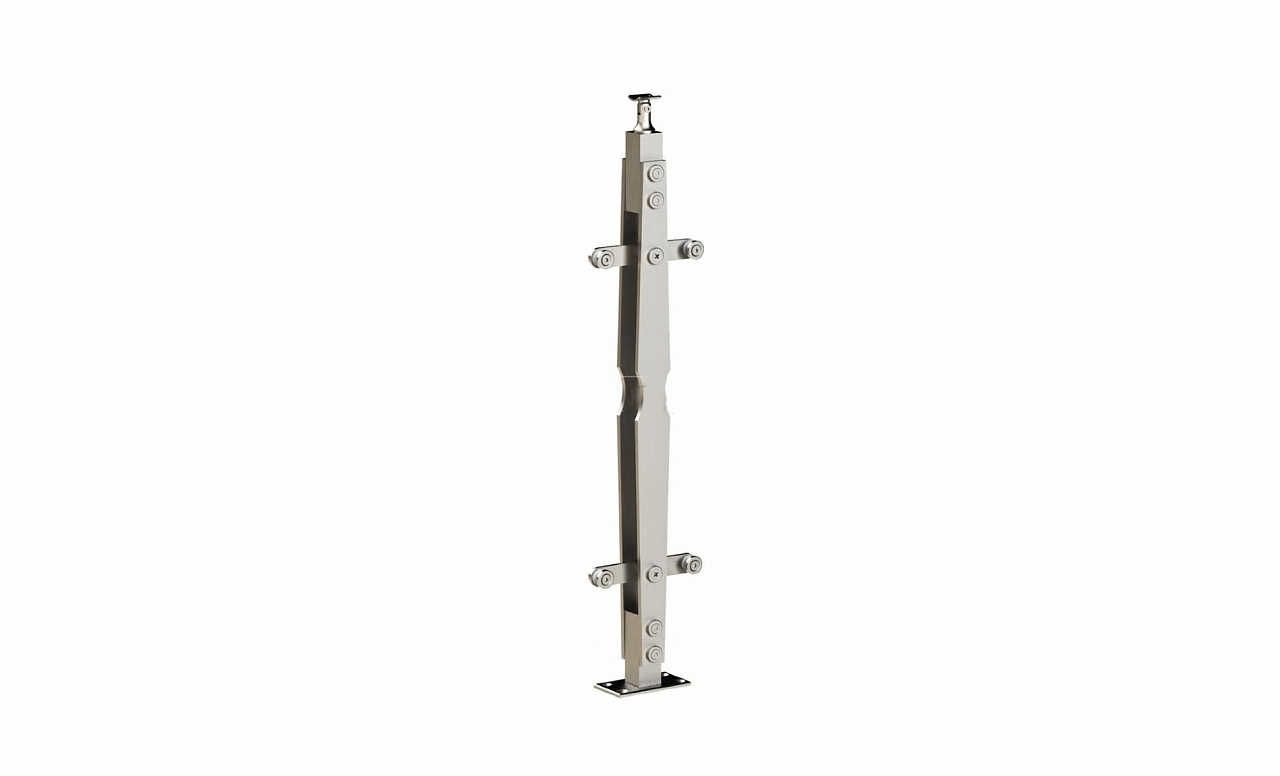 Стойка квадратная 40х40: 4 литых стеклодержателя, полированная, высота 950 мм (AISI 304) k746 купить в Омске