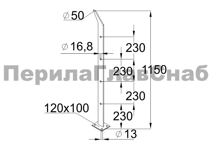 Готовая стойка 40х40х950 мм, деревянная, со вставками из нержавеющей стали 2х100 мм с 3 ригеледержателями k740-1-G купить в Омске