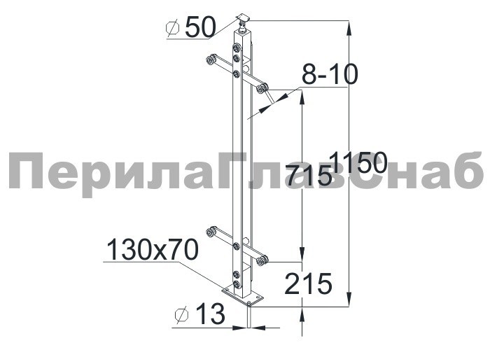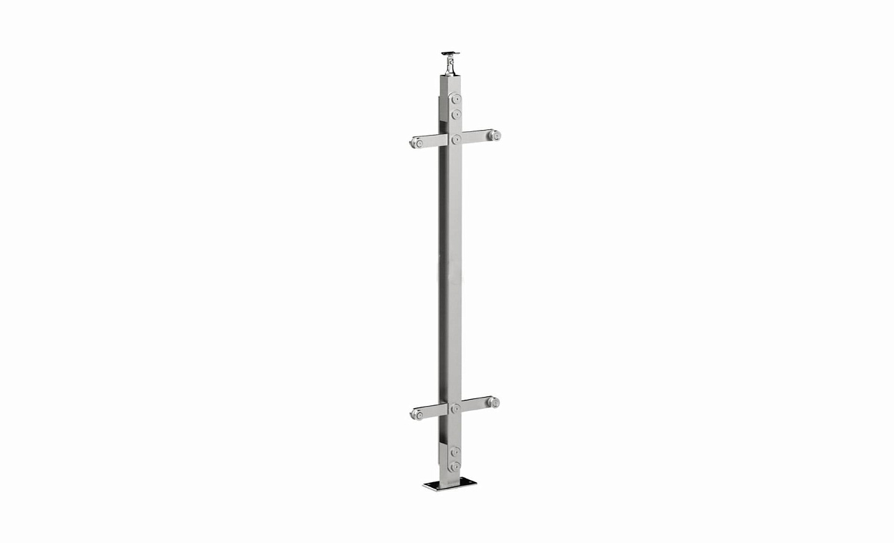 Стойка квадратная 40х40: 4 литых стеклодержателя, полированная, высота 950 мм (AISI 304) k746 купить в Омске