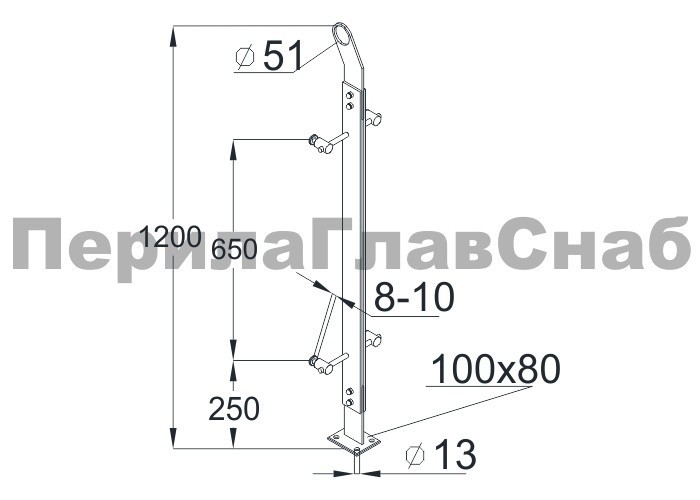 Стойка эксклюзивная из двух пластин с двумя спайдерными стеклодержателями, крепление в пол, нерегулируемый ложемент с обхватом (AISI 304) k768