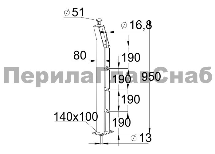 Стойка квадратная 40х40: 4 литых стеклодержателя, полированная, высота 950 мм (AISI 304) k746 купить в Омске