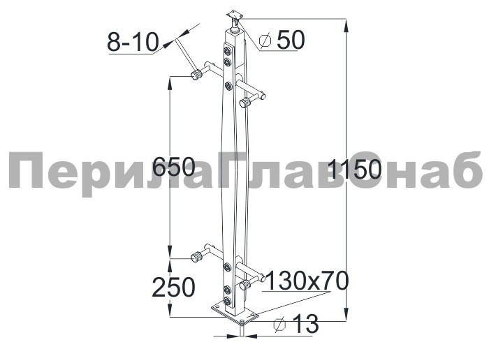 Готовая стойка 40х40х950 мм, деревянная, со вставками из нержавеющей стали 2х100 мм с 4 зажимными стеклодержателями k740-3 купить в Омске