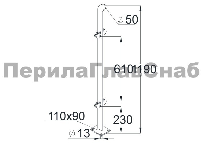 Стойка круглая Ø38.1: 2 литых зажимных стеклодержателя, под стекло 8-10 мм, полированная, высота 950 мм (AISI 304) k722-L купить в Омске