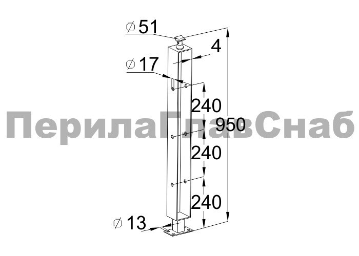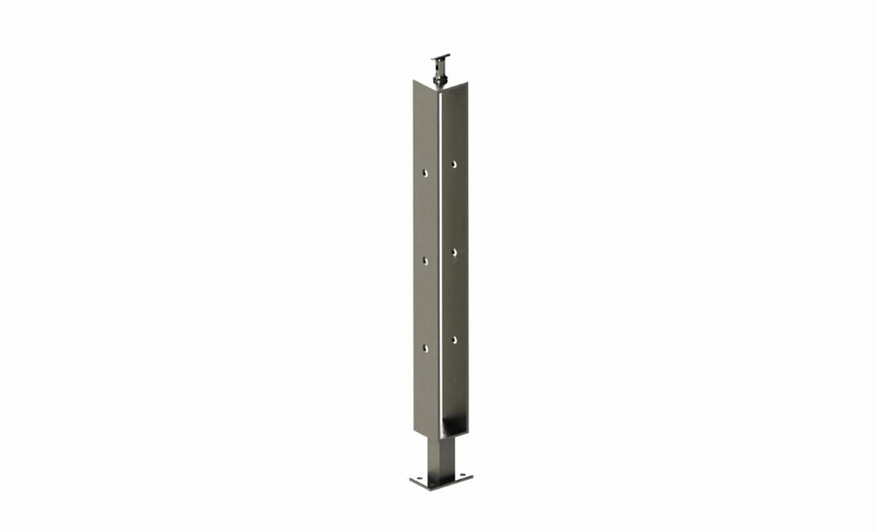 Стойка квадратная 40х40: 4 литых стеклодержателя, полированная, высота 950 мм (AISI 304) k746 купить в Омске