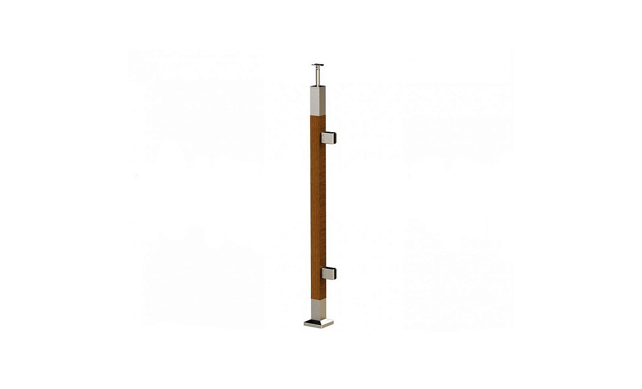 Готовая стойка 40х40х950 мм, деревянная, со вставками из нержавеющей стали 2х100 мм с 2 зажимными стеклодержателями k740-4-R