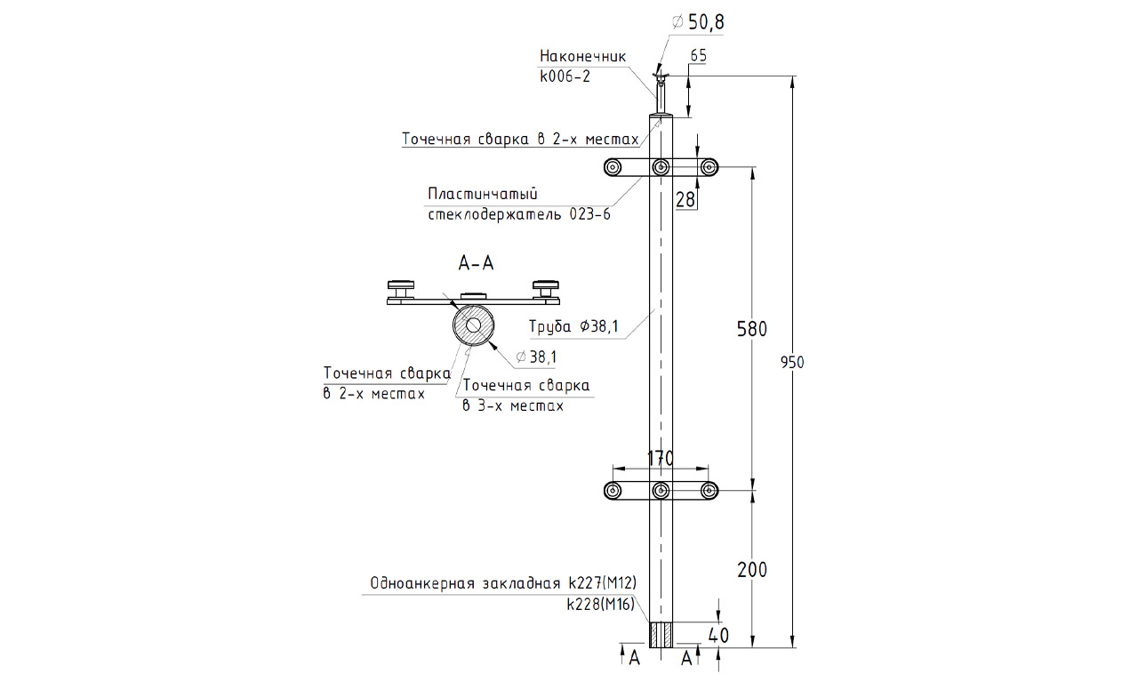 Готовые стойки – это экономия вашего времени и денег. Приобретая готовую стойку Вы можете собрать ограждение сами, не привлекая монтажную бригаду и экономя денежные средства на монтаже. Стойка накручивается на шпильку М12 или через ступеньку на болт М12. Отверстия под анкер-болт ( М-3129, М-3843, М-3838) либо при помощи шпильки М10 ( М-3963, М-3727, М-3964). Стекло крепится в стеклодержателе за счет отсоединяющейся одной половины стеклодержателя при помощи шестигранника ( k931, k932). Поручень из нержавеющей стали так же легко закрепить при помощи сверла по нержавеющей стали ( k961-03, k961-03.5, k961р-03.5, k961р-03) и самореза ( М-3850, М-3847, М-3215). Либо при помощи заклепки ( М-3214) и винта М6 ( М-3973). Если вы используете пластиковый ( k893, k897, k892, k891, k894, k895, k899) или деревянный поручень, то его можно закрепить при помощи саморезов ( М-3217)