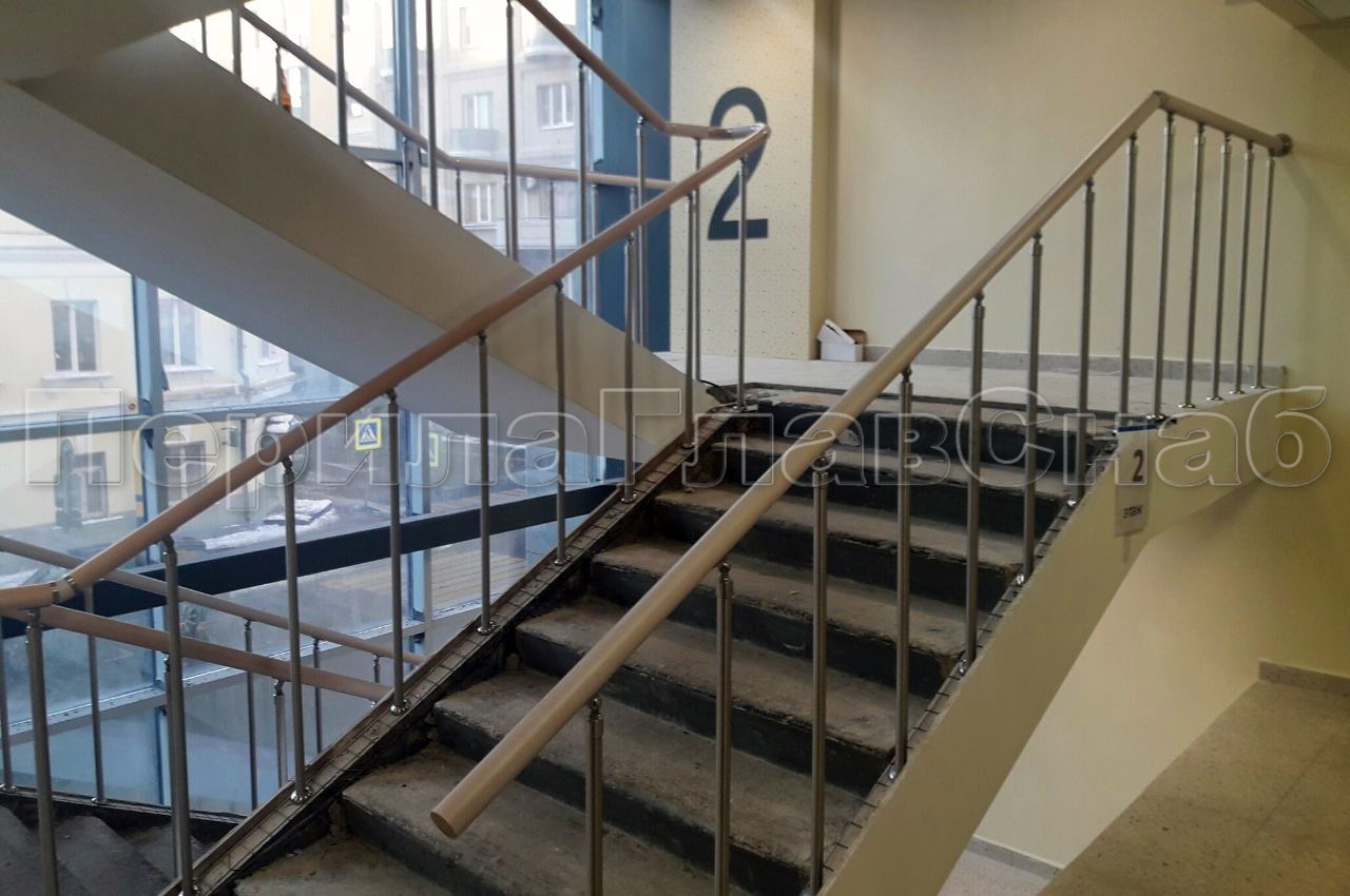 А также объемный заказ на перила для внутренней лестницы. Заказчик предоставил дизайнерский мокап, а сотрудниками компании ПерилаГлавСнаб был идеально подобран конструктив максимально схожий с проектом. Самая большая сложность этой работы заключалась в том, что это уже действующий бизнес центр с огромным трафиком сотрудников. Бригадам приходилось максимально аккуратно выполнять монтаж. И даже порой выходить в вечернее время, что высоко ценилось клиентом, поскольку скорость работы была одной из ключевых задач. Стойки и комплектующие к ним были выполнены из шлифованной нержавеющей стали собственного производства. Поручень изготовлен из высокопрочного бука, набранный и склеенный ламелями по всей длине. Тем самым обеспечивал скорейшее высыхание древесины и не рассыхается в процессе эксплуатации. Поворотные элементы поручня склеены через штифт для повышенной стойкости, а стыки закрыты нержавеющими кольцами. Такой метод высоко оценил главный дизайнер проекта. Потому что было перекликание метала со стойками. Окрас поручня был подобран по образцам заказчика, цвет называется «Слоновая кость». Как нельзя к стати подошел к стенам интерьера. Все двенадцать этажей лестницы были огорожены триста сорока восьмью метрами погонными высококлассного и удобного в использовании ограждения. В установленный заказчиком срок двадцать пять рабочих дней.