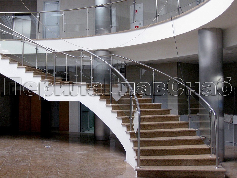 В здании больницы, возведенной широко известной СУ-155, была установлена лестница, облицованная гранитными вставками на каждой ступени и установлено ограждение с изогнутым поручнем из нержавеющей стали.