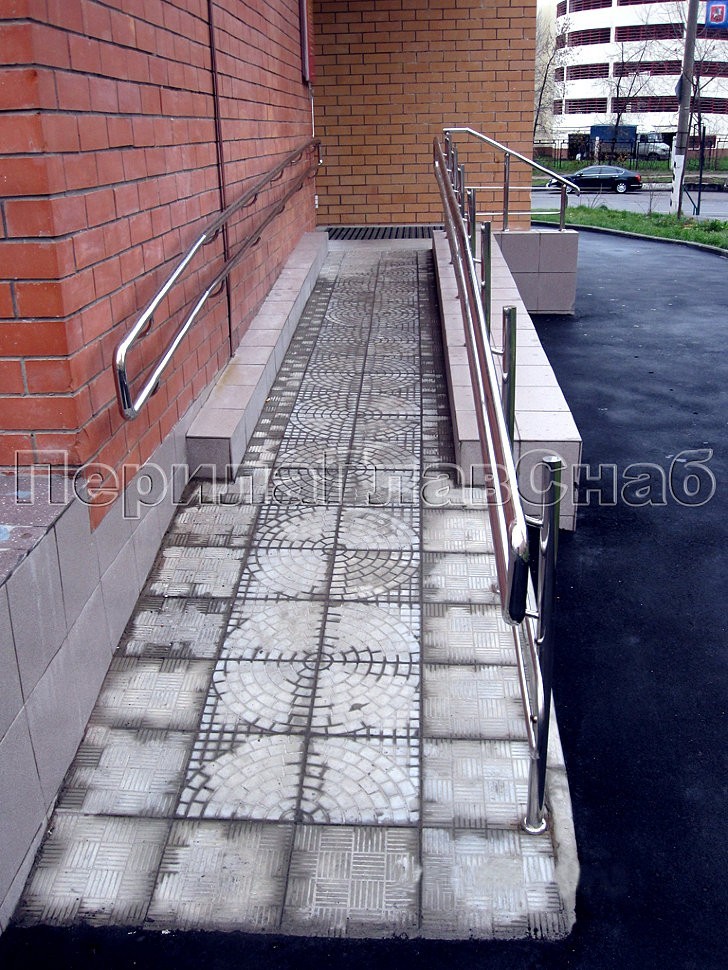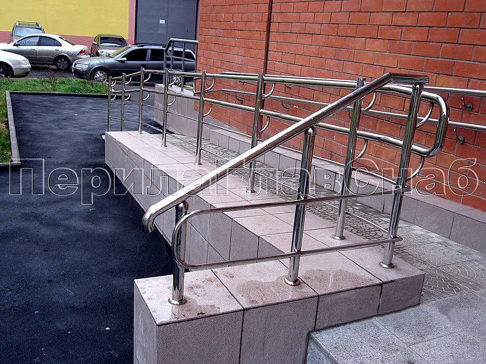 У входа в здание Сбербанка на ул. Новорогожская был установлен сложный комплекс из ограждений входной группы и пандуса для инвалидов со специальной системой поручней из нержавеющей стали от компании «ПерилаГлавСнаб».