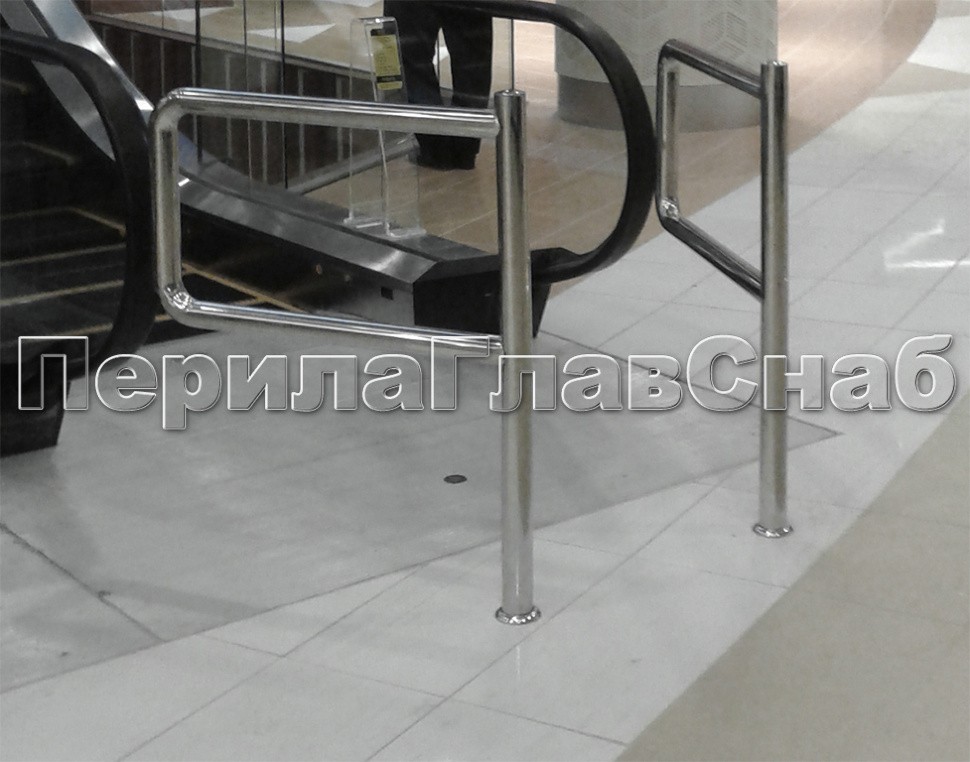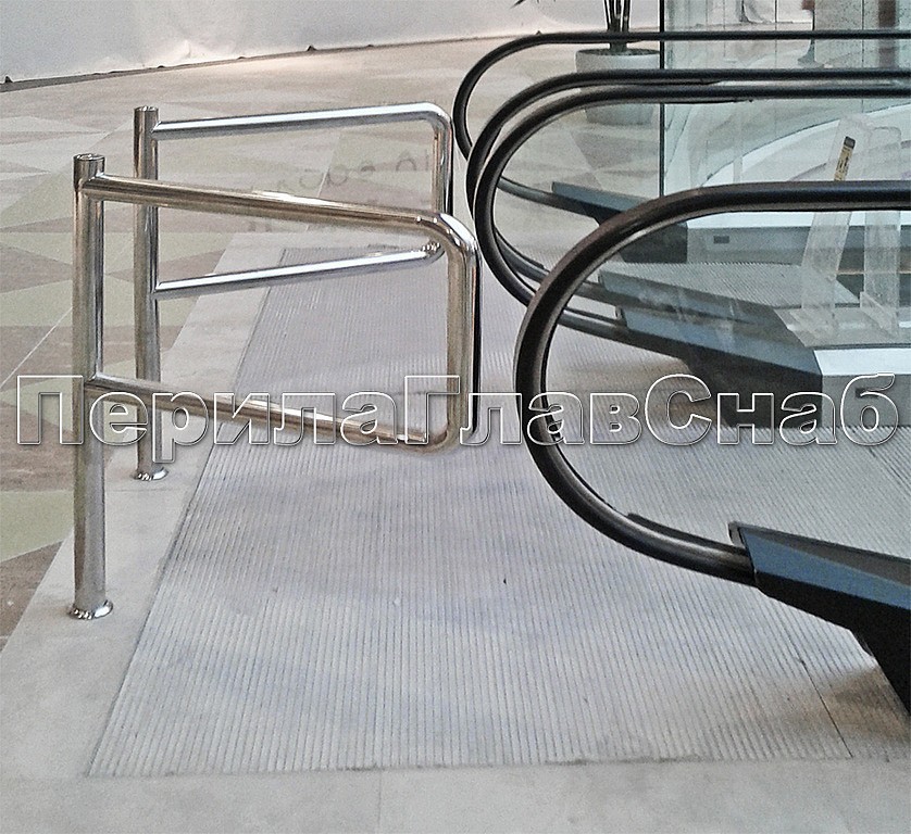 Для ограждений эскалаторов использовалась "зеркально" отполированная нержавеющая труба диаметром 50мм. Стойки установлены методом безударного бурения.