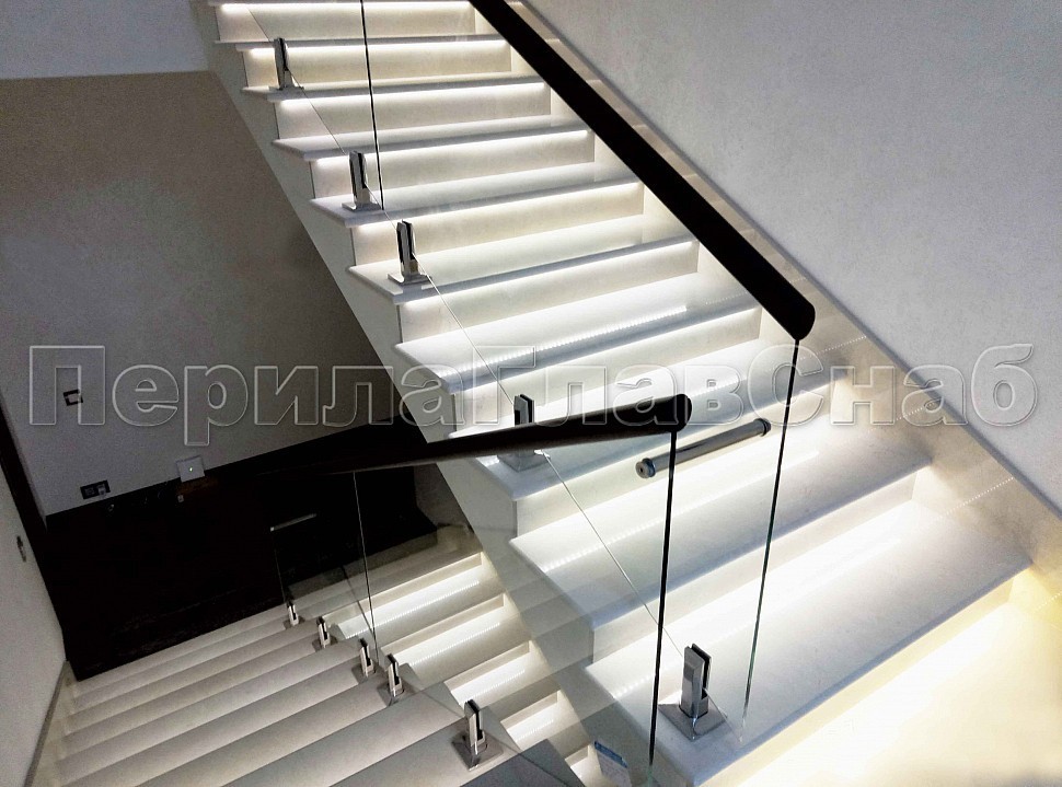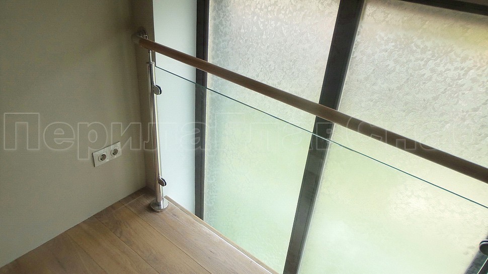 Стильное ограждение из нержавеющей стали с деревянным поручнем - оптимальное решение для частного дома. Деревянный поручень, в отличие от металлического, теплый на ощупь - за него удобно и приятно держаться. Сочетание натурального дерева и нержавеющей стали выглядит очень стильно и такое ограждение великолепно впишется в любой интерьер. В нашу компанию поступил такой заказ. Ограждения из полированной нержавеющей стали внутренние со стеклом высота 950 мм, стойки диаметром 38 мм, крепление сверху методом алмазного бурения диаметр 42 мм на глубину 70 мм, устанавливаются через две ступени в третью, на прямых участках не более 1000 мм друг от друга, наконечник стойки штырь; стекло закаленное прозрачное 8 мм, крепится на зажимные стеклодержатели; низ стойки декоративная крышка диаметр 56 мм, поручень деревянный диаметр 38 мм из дуба тонированный и лакированный, окончание поручня заглушка, уходов поручня в стену через фланец, поручень завязан нержавеющим отводом. Крепление нержавеющих элементов ограждения между собой точечная аргонно-дуговая сварка, с последующей зачисткой и полировкой.