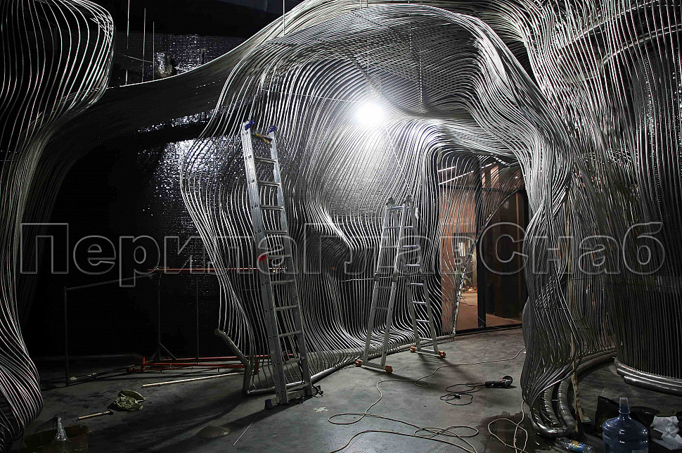 Шесть месяцев, более 150 человек, в 3 смены трудились над этим проектом. При кажущейся простоте, это очень сложная конструкция, тысяча квадратных метров 3-х мерной поверхности из нержавеющих труб 16 мм и 120 тонн льда. Каждая трубка по изгибу не похожа на предыдущие.Было много опасений за структуру льда, но удалось сделать его таким, как в Арктике.