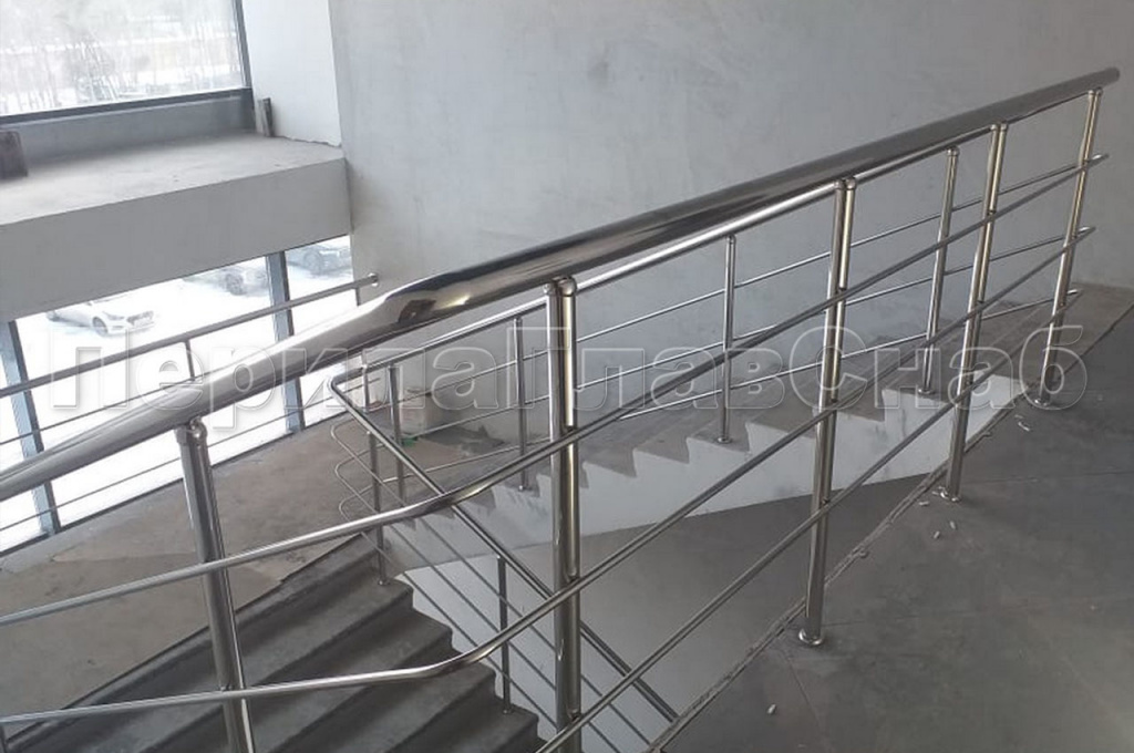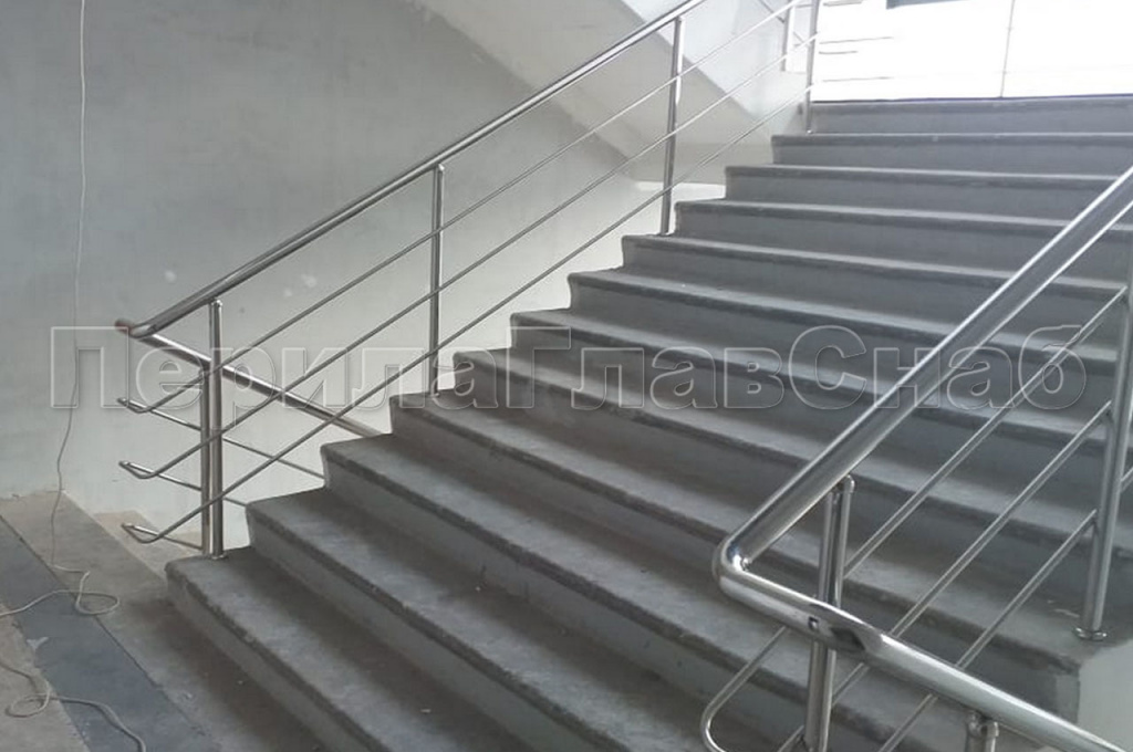 Большая работа по установке нержавеющих ограждений  была проделана в течение 2019г в городе Зеленограде. В четырех корпусах компании заказчика ЭЛМА был произведен капитальный ремонт. Который включил в себя демонтаж и монтаж перил в исполнении компании ПерилаГлавСнаб. Работы по изготовлению и монтажу ограждений велись поэтапно и смежно с отделочной организацией. Т.е. необходимо было согласовывать шаги по графику производства не только с заказчиком, но и с его субподрядчиком. Как раз для этих целей наш прораб каждый день находился на объекте. Двести восемьдесят два метра погонных перил одинакового конструктива, но с разным методом крепления стоек установили штатные монтажники компании ПерилаГлавСнаб. Ввиду того что ширина лестничных маршей была разная на всех лестницах. Необходимо было выдержать пожарные нормы, для безопасной эвакуации людей в возможной чрезвычайной ситуации. Торцевое (боковое) крепление стоек для усиления  в начале марша поручень для жесткости торцевого крепления основных перил уходит вбок и в пол, сменяло от лестницы к лестнице бурение сверху в ступень по средствам алмазных коронок с подачей воды, что бы избежать запыления помещения. Изюминкой проекта стал незаметный глазу перепад высоты ограждения по маршу 950 мм на высоту ограждения площадки в 1100 мм. Такого результата  получилось достигнуть играя высотой стоек, чем могут похвастаться наши высококвалифицированные и опытные бригады монтажников. Стоимость погонного метра в данном заказе составила 4 870 рублей.