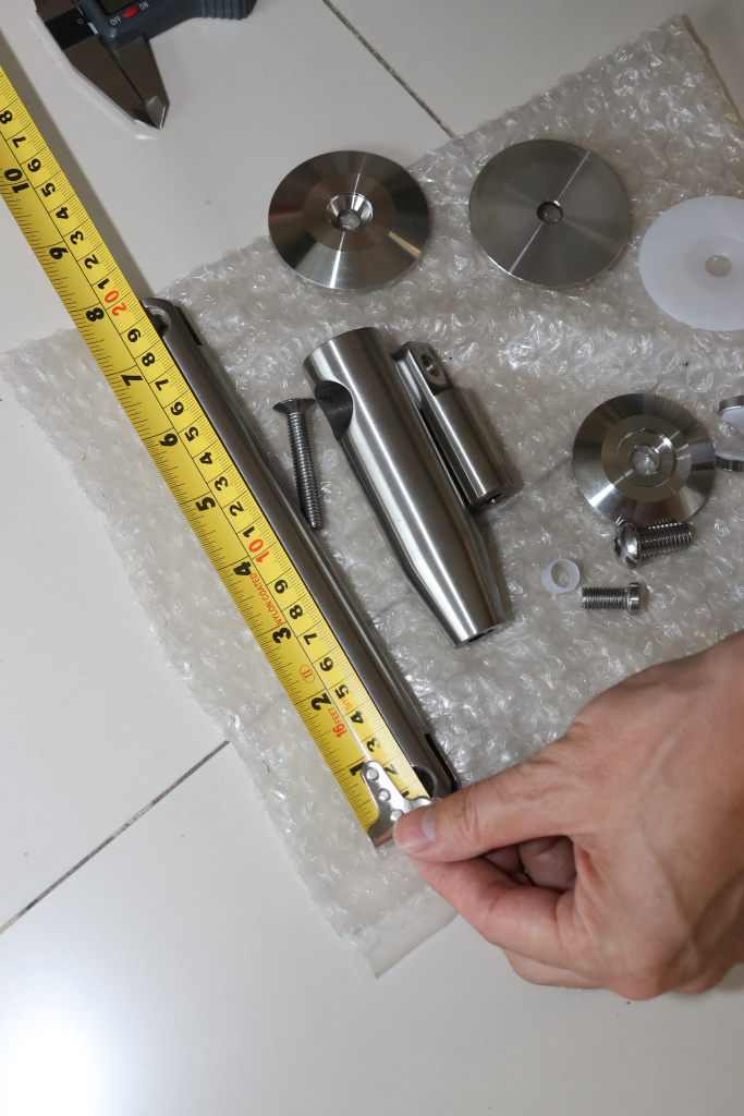 Крепление для двух стекол к ванте, поверхность полированная, марка стали- AISI 304
