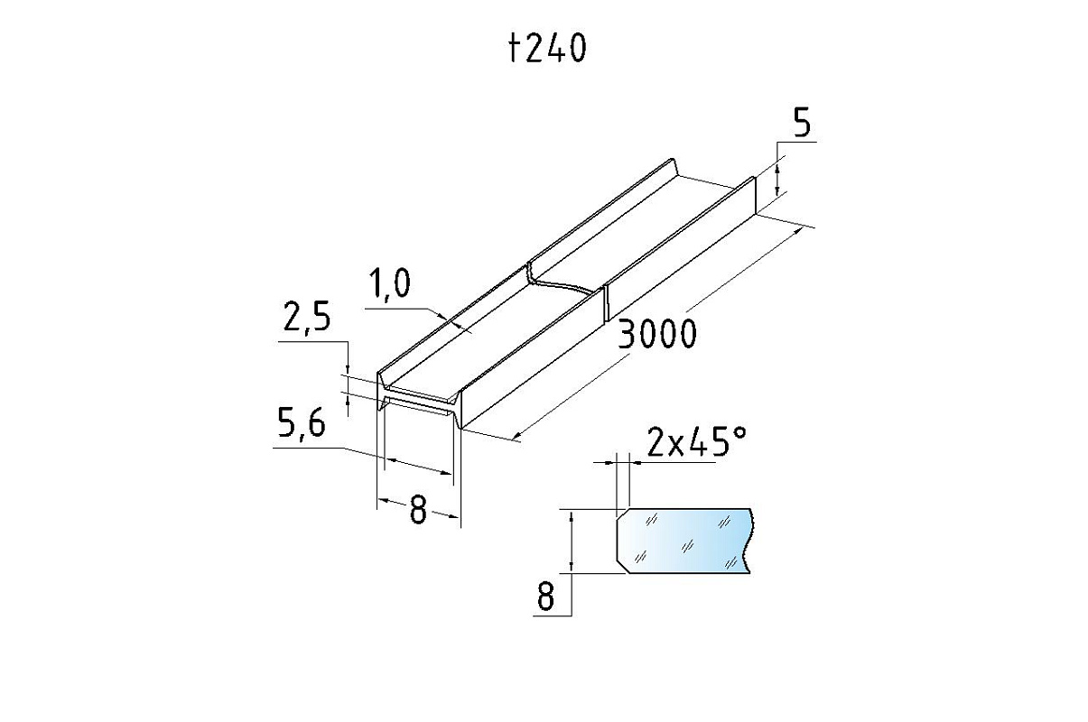Профиль самоклеящийся для стекла 8 мм, длина 3000 мм t240