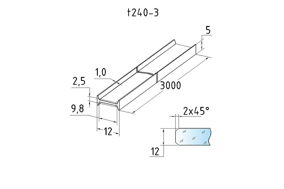 Профиль самоклеящийся для стекла 12 мм, длина 3000 мм, t240-3