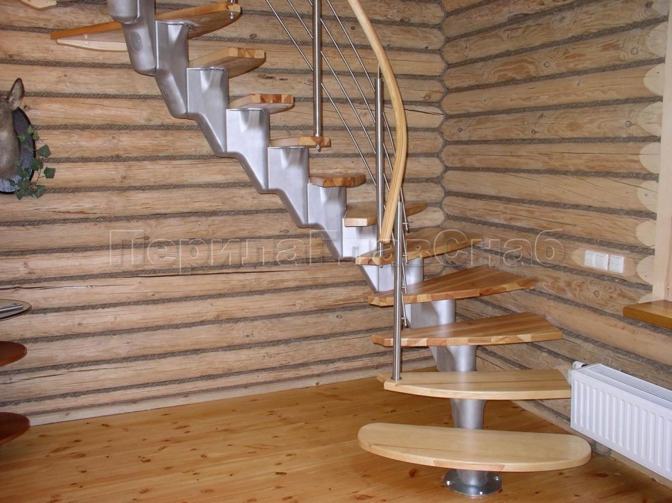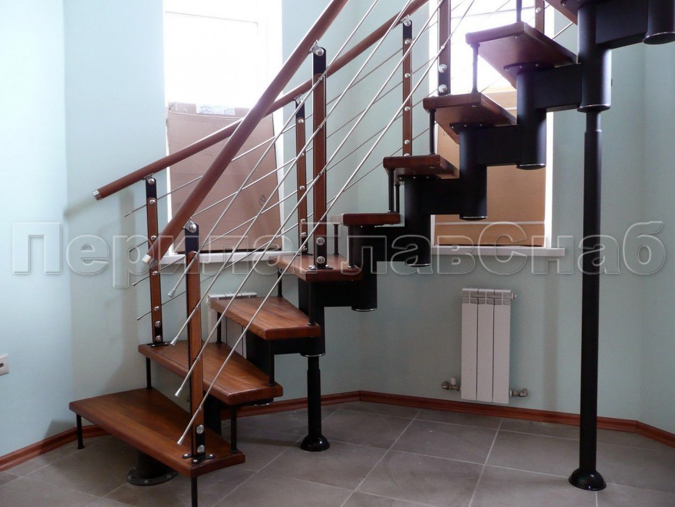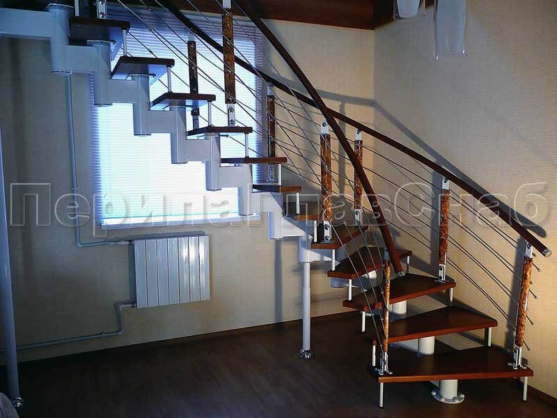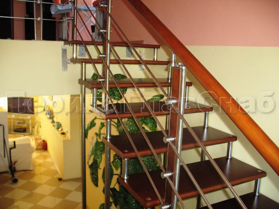 Ограждения с двумя стойками в каждую ступень с деревянным поручнем и без ригелей