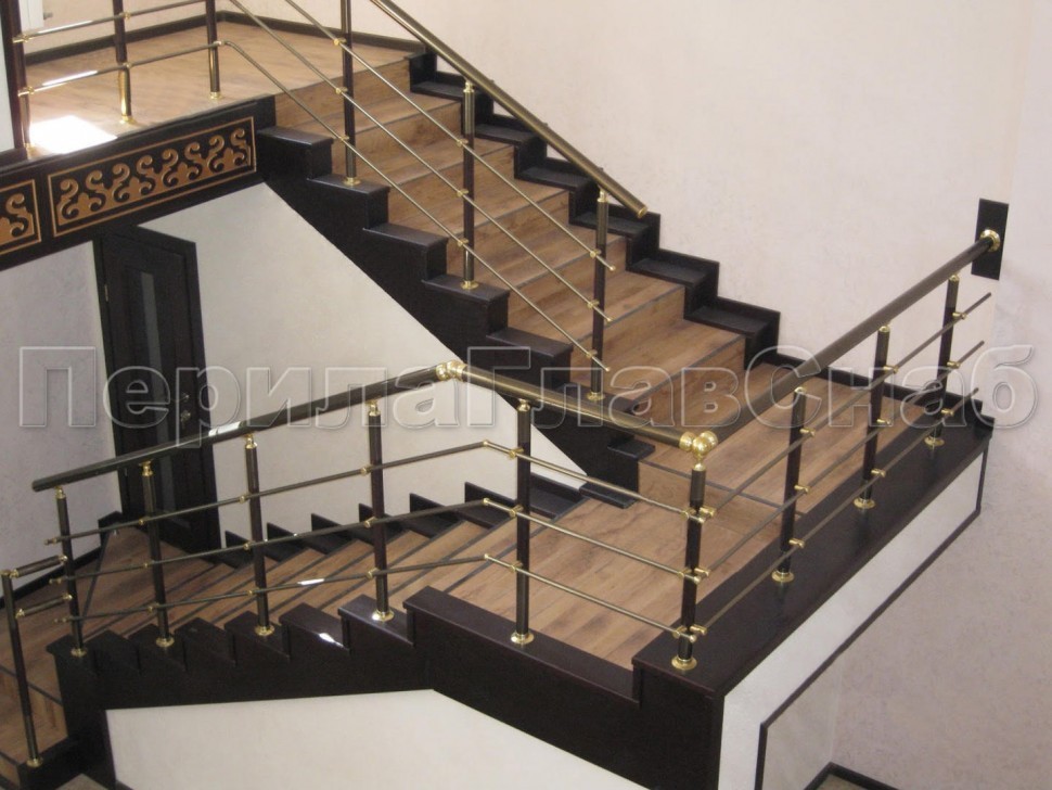 Лестничное ограждение с тремя ригелями и поручнем из латуни