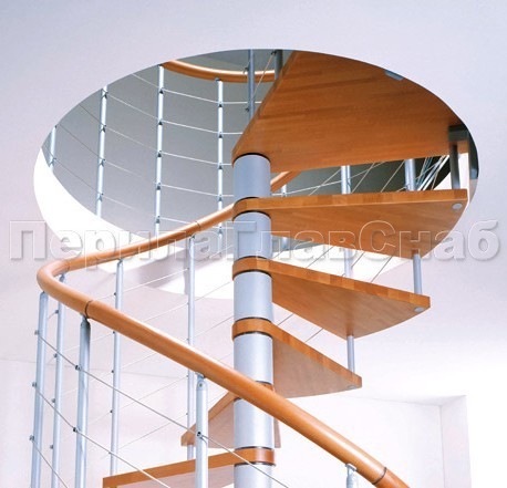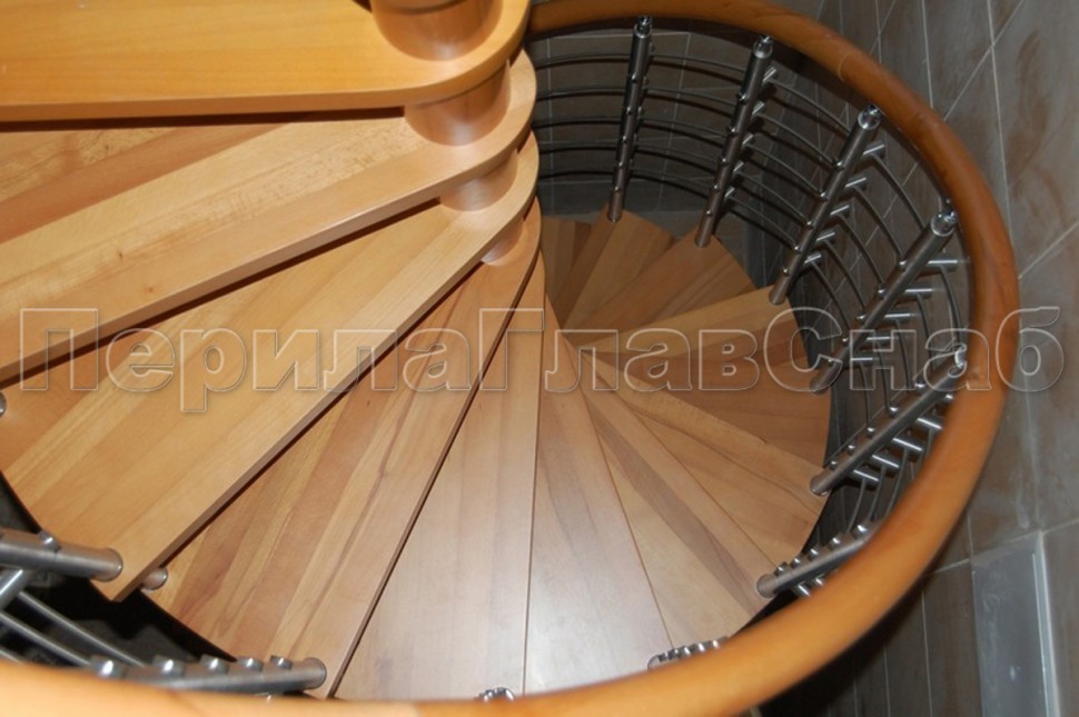 Ограждения со стойками в каждую ступень с круглым деревянным поручнем без ригелей
