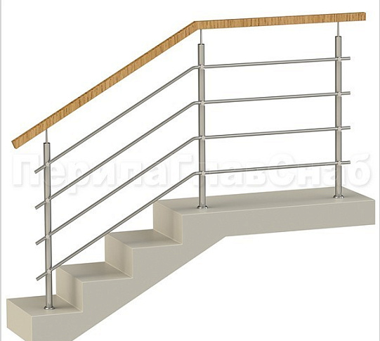 Записаться на встречу Четыре ригеля на держателях, квадратный деревянный поручень и круглые стойки